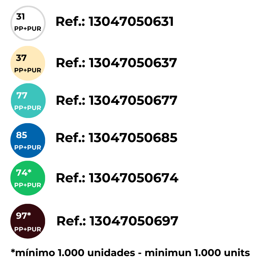 | MATERIAL | Polipropileno + Poliuretano sin CFC [PP+PUR] |